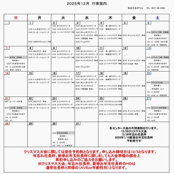 2025年12月度行事予定の印刷はココをクリック